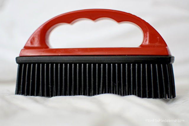 Käytän harjaa siis lakanaan ennen kuin se menee pesuun. Yritän saada suurimman osan karvoista pois, ettei ne tuki pesukoneen putkia eikä lakana ole pesun jälkeen täynnä huovittuneita karvapalloja.